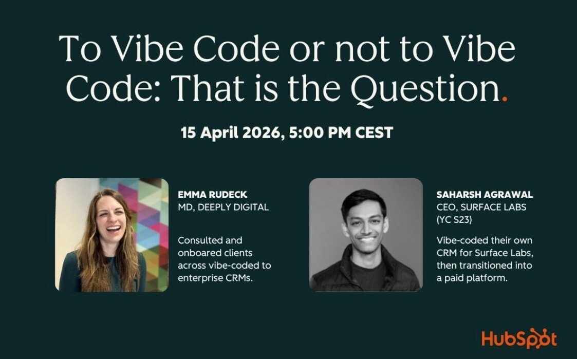 As part of our HubSpot for Startups partnership, join us for an exclusive deep dive with Saharsh Agrawal (CEO of YC-backed Surface Labs) and Emma Rudeck (MD at Deeply Digital). They’ll skip the fluff and share straight talk on: